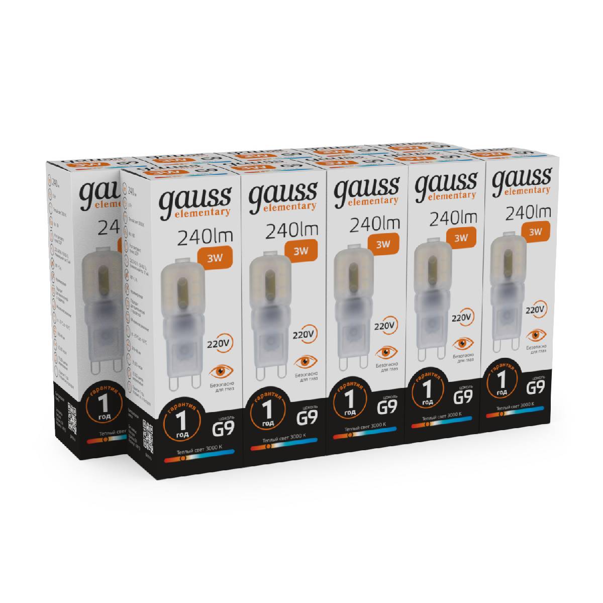 Лампа светодиодная Gauss G9 3W 3000К прозрачная 14913
