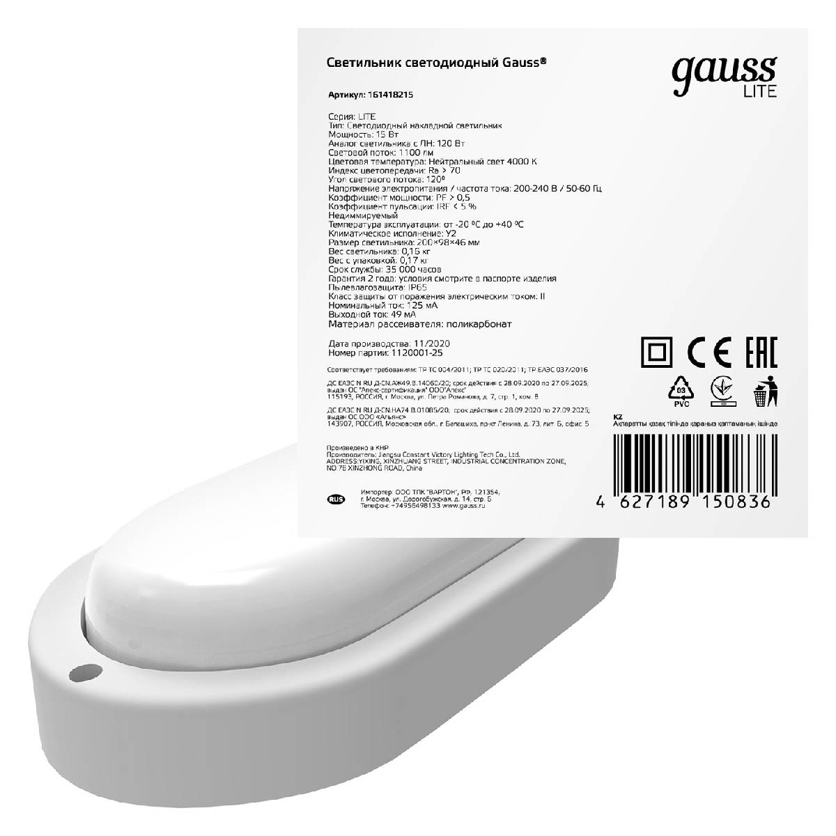 —Настенно-потолочный светодиодный светильник Gauss Lite 161418215