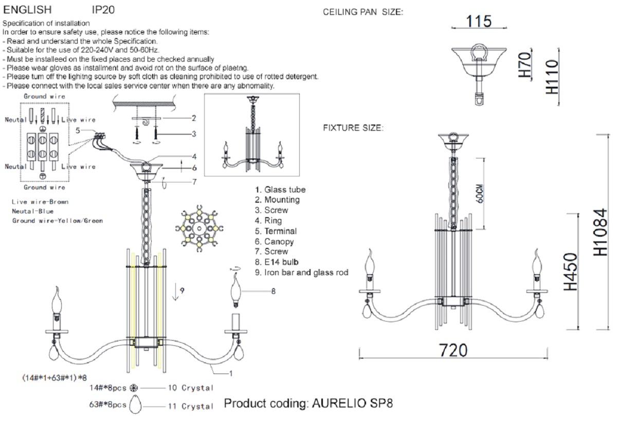 Подвесная люстра Crystal Lux AURELIO SP8 GOLD+CHROME/TRANSPARENT - это прекрасное сочетание стиля и качества! Она станет ярким акцентом в интерьере вашего дома и подчеркнет его индивидуальность. Этот бренд родом из Испании, что гарантирует долговечность и надежность товара. Люстра оснащена патронами с цоколем E14, предназначенными для использования лампочек накаливания или светодиодных. Рекомендуем использовать светодиодные лампы, т.к. они долговечнее, меньше греются и экономят электроэнергию. Лампы в комплект не входят и покупаются отдельно. Гарантия производителя на данный светильник составляет 18 месяцев. Доставка люстры Crystal Lux AURELIO SP8 GOLD+CHROME/TRANSPARENT по Москве 1-3 дня. Купить люстру можно оформив заказ на сайте или по телефону 8(499)390-32-71. Оплата заказа возможна при получении, любым удобным для вас способом.