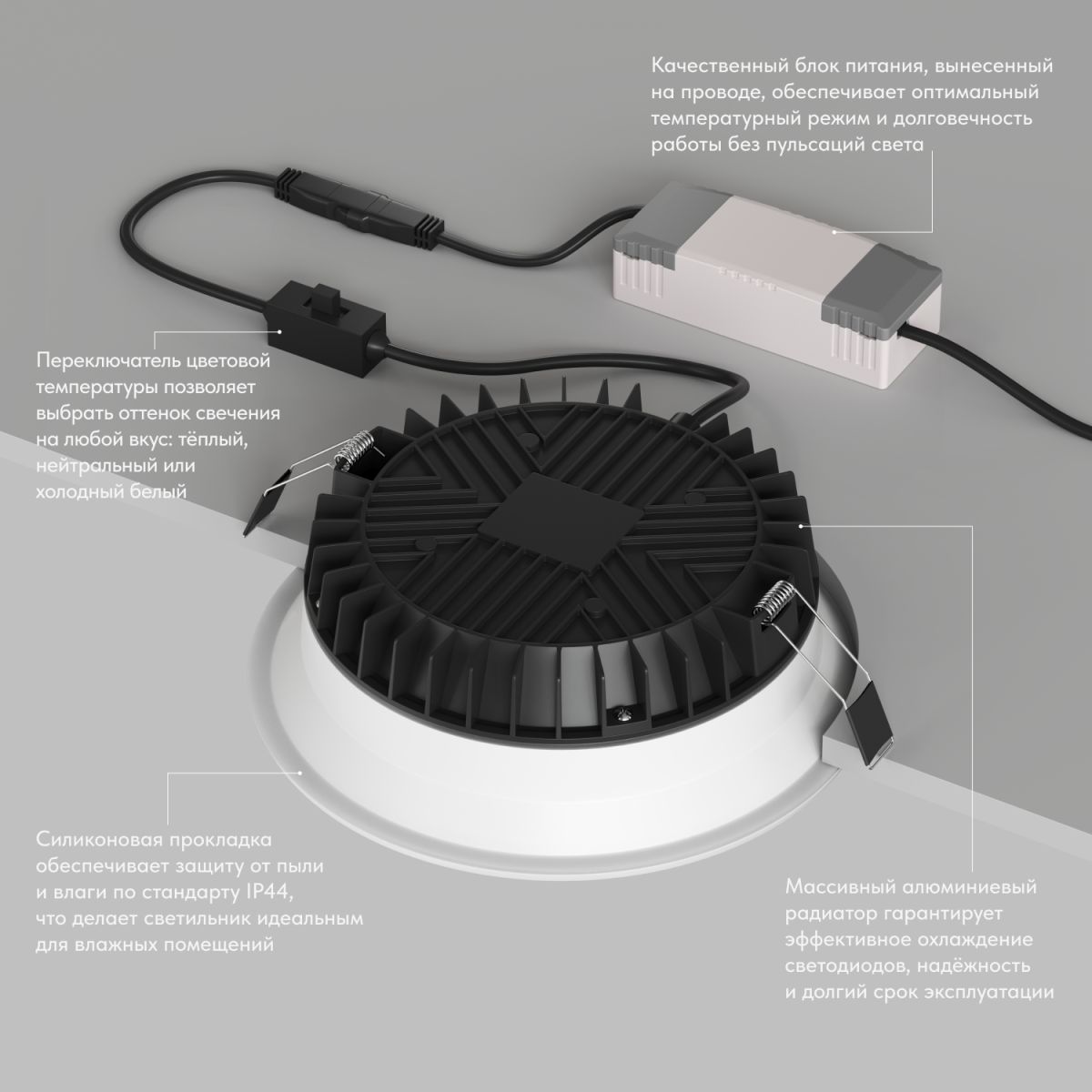 Подходит для низких потолков
